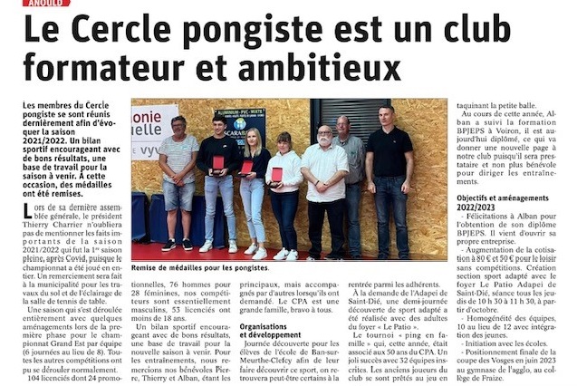 Article Vosges Matin – AG du CPA par admin · Publié 25 septembre 2022 · Mis à jour 25 septembre 2022 Edition du Jeudi 22 septembre 2022 Partager